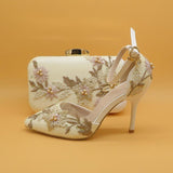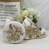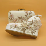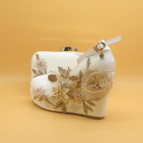 Description: Designer white lace 3D flower shoes and matching bag clutch set designed by Italian designer. Rich use of sophisticated pastel shade light colors, yet attractively organized to give each shoe a distinct look. Each shoe has been meticulously handcrafted to perfectly match with the clutch bag which together go well with many types of dresses and worn at multiple occasions such as wedding, parties, get together, fashion shows, modeling night out etc.