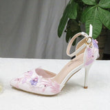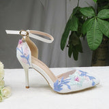 - Pointed round toe, raised platform as well as raised heel, shoes with ankle strap