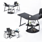 the computer desk is made out of a beautiful mdf that appearance and functionality are classy and efficient in-home/office.Office desk in a very sturdy frame that is designed in an edgy architectural look to support all your office essentials, no serious shaking or movement, very stable and secure.Office desk foot cups height adjustment to keep the legs in the same height, strong legs hold pc on top along with the monitors and peripherals.